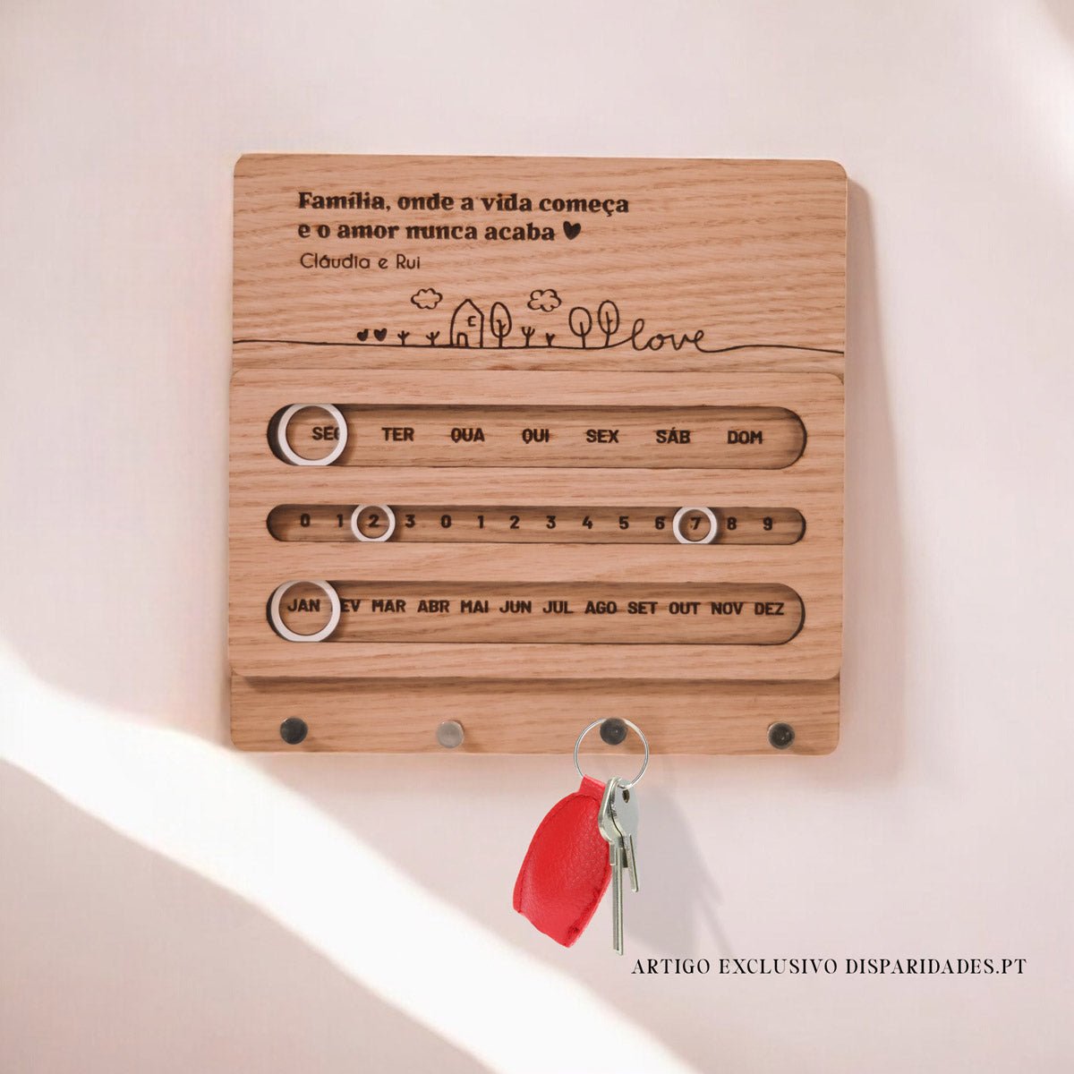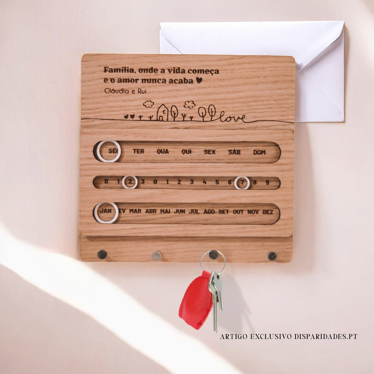 We are pleased to present you with a 3-in-1 gift that is sure to please even the most discerning friend: a keychain that also doubles as a card holder and perpetual calendar. This is a perfect item to surprise and delight!