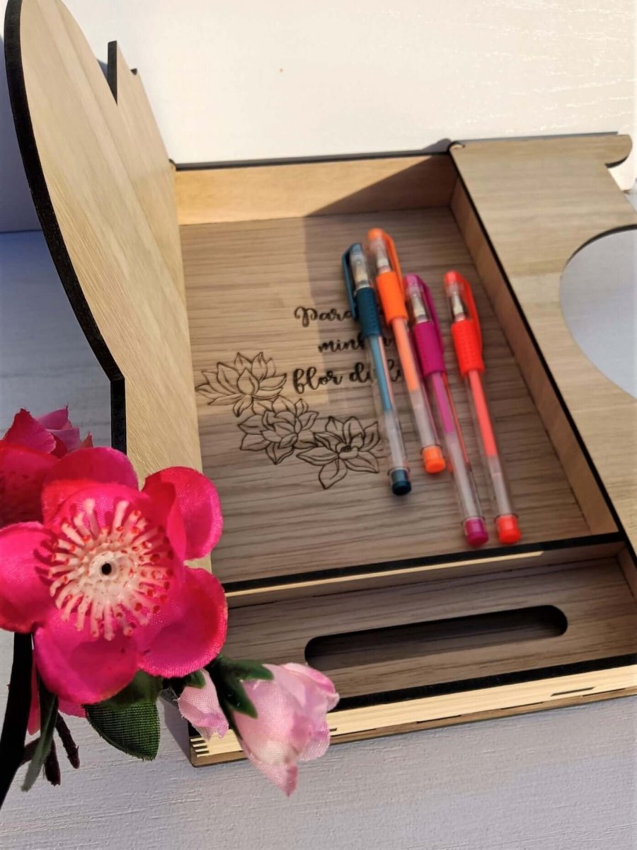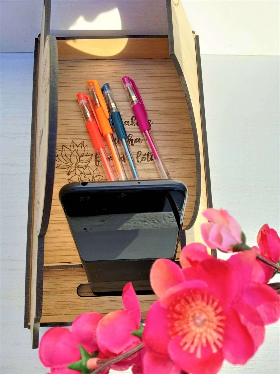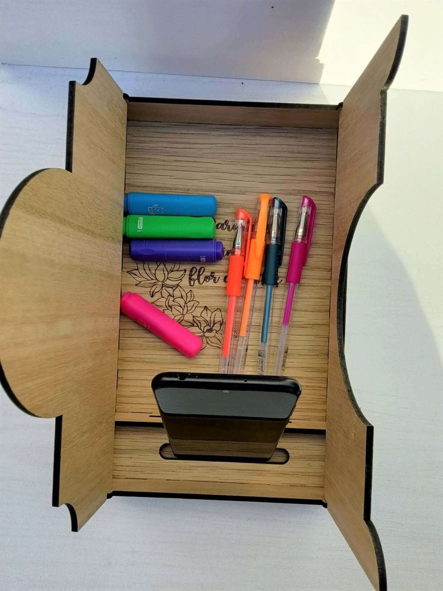 Caixa de madeira com suporte para telemóvel e lápis | Siena