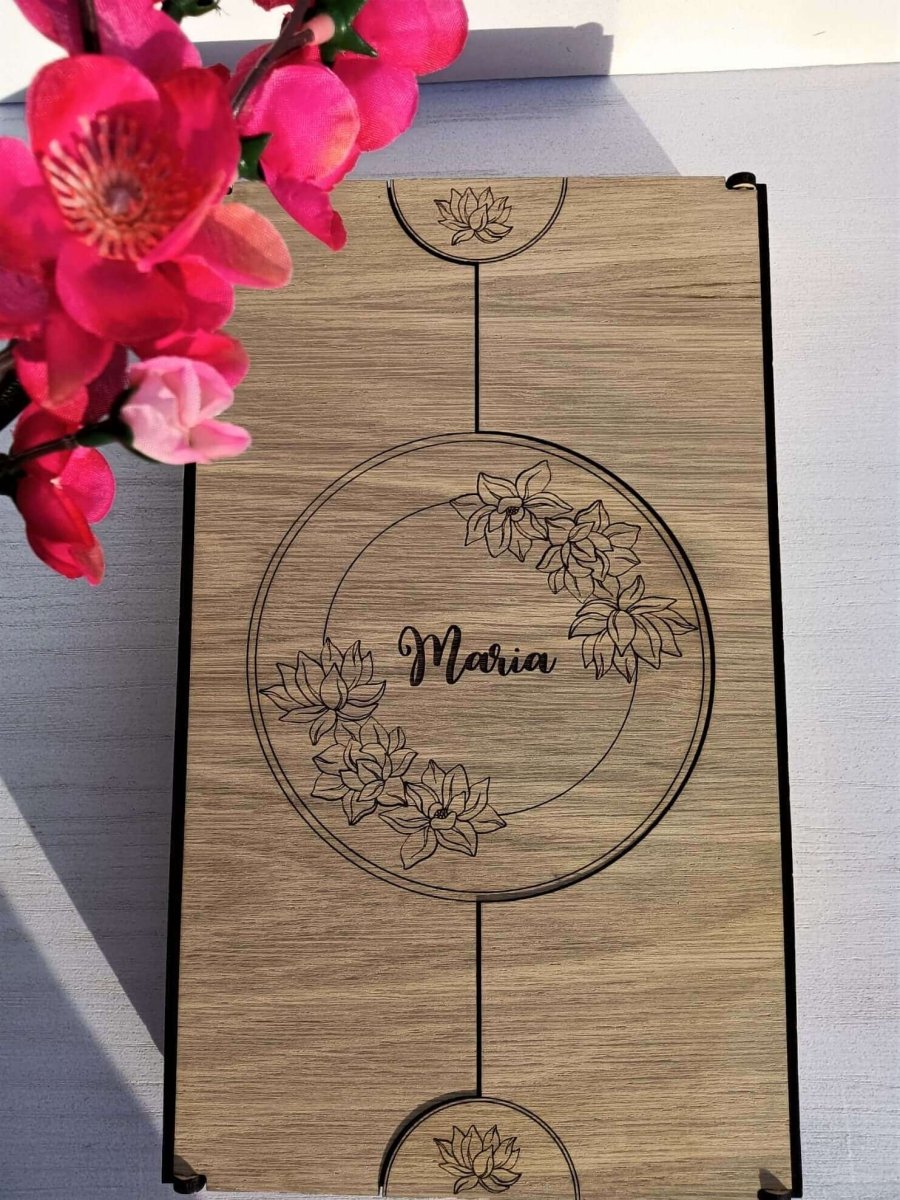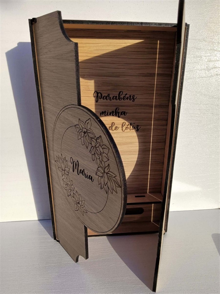 Pode personalizar com uma frase que será gravada ao centro da tampa da caixa.Para outras personalizações, entre em contacto connosco. Será um prazer criar algo único para ti.