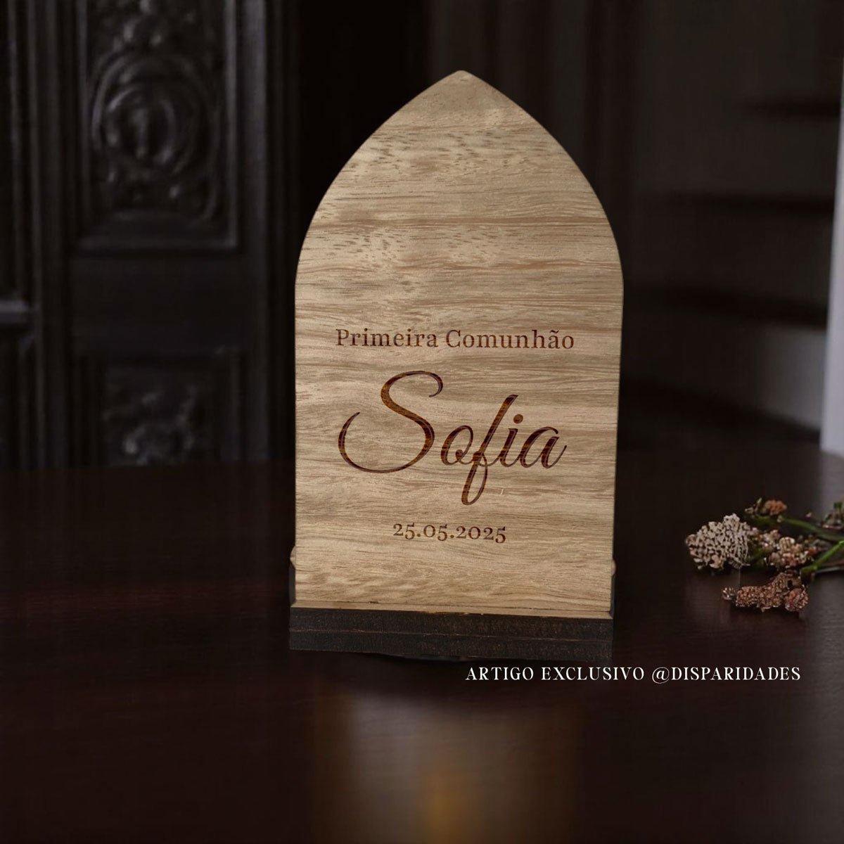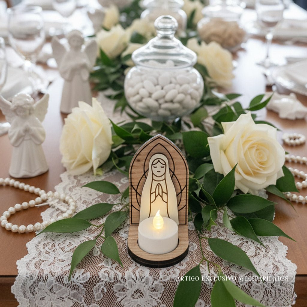Celebra a fé com um toque artesanal ✨ Esta Lembrança com forma de oratório em madeira natural é uma lembrança cheia de significado, com a imagem delicadamente gravada de Nossa Senhora de Fátima e um espaço especial para acender uma vela. Um detalhe único que aquece a alma e transforma qualquer cantinho num altar de devoção. Ideal para oferecer em momentos de fé ou eventos religiosos especiais.