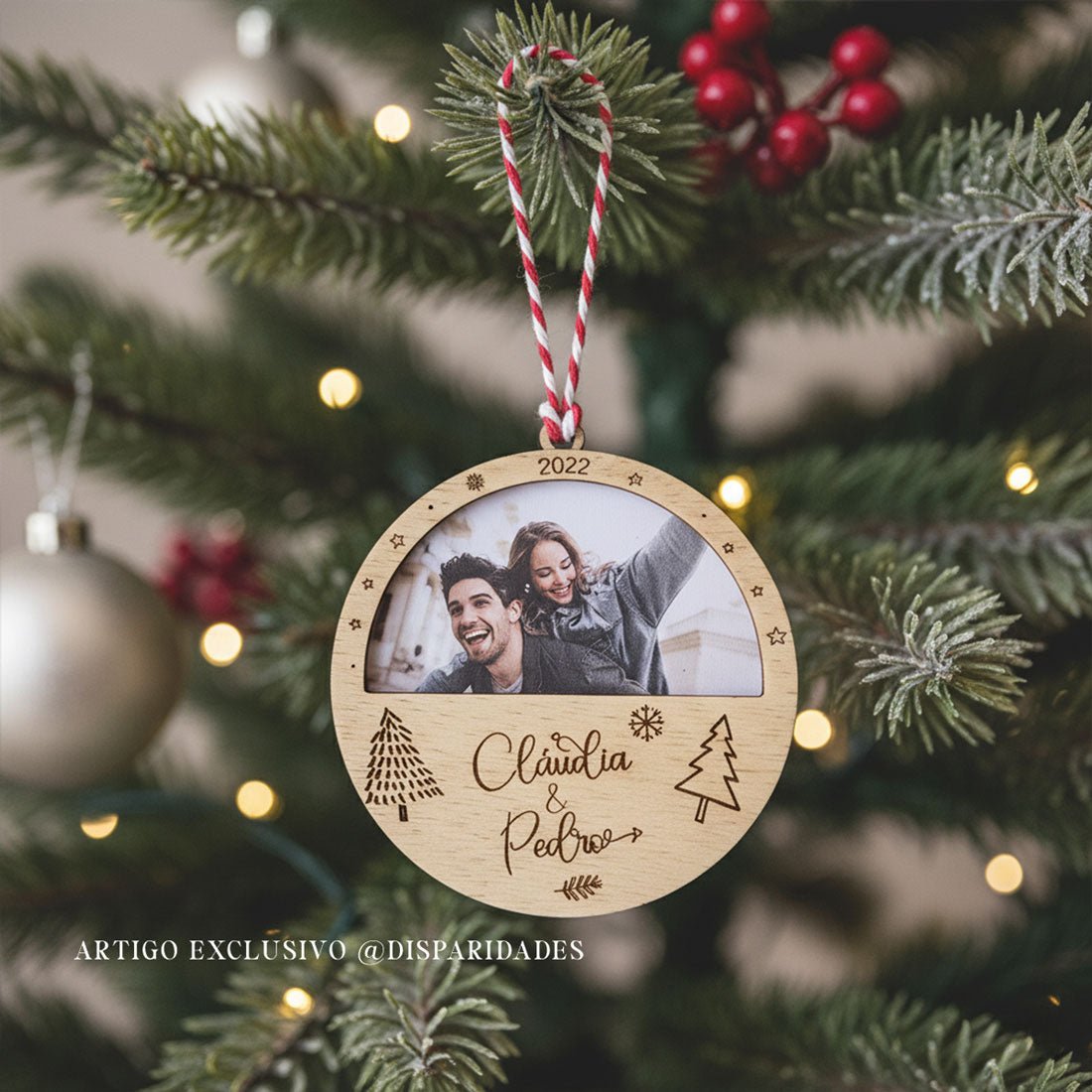 Transforma este Natal num momento inesquecível! 🎄 Imagina a tua árvore de Natal enriquecida com a nossa Bola Porta-Retrato artesanal. 👨👩👧👦 Fabricada em Portugal, este pequeno luxo oferece não só design original, mas também uma qualidade ímpar graças à madeira contraplacada de choupo de fontes responsáveis. 🌿