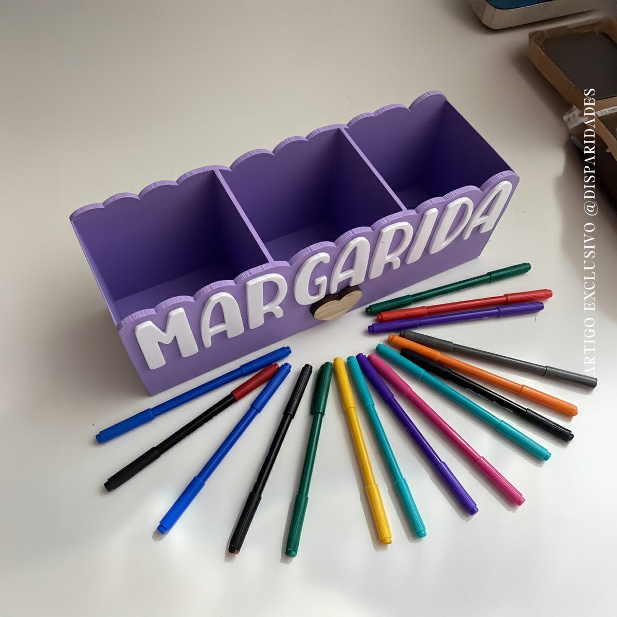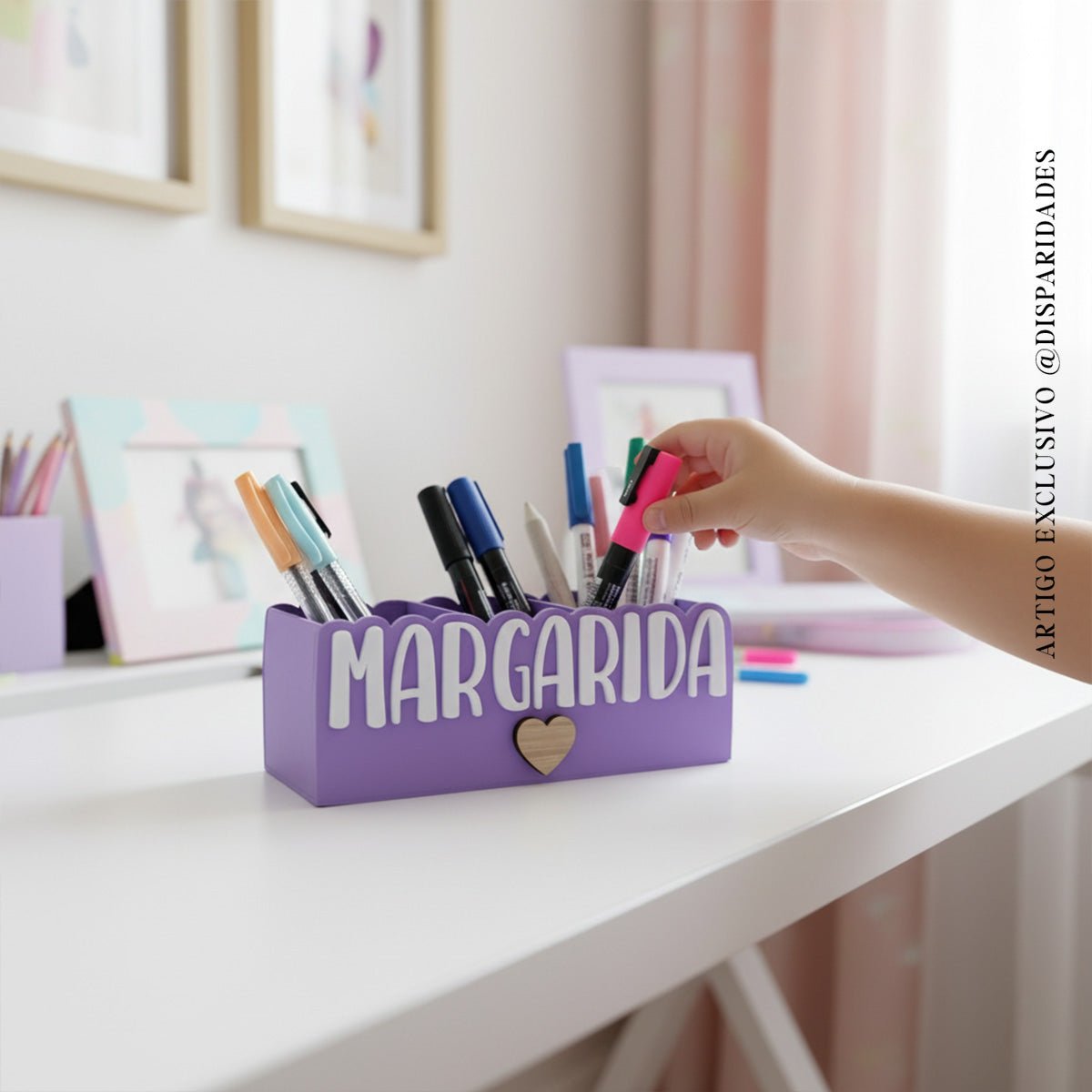 Este porta-lápis é o presente perfeito para encantar os mais pequenos 🎁 Com o nome da criança em destaque e um coração em madeira de carvalho que aquece o olhar, transforma qualquer secretária num cantinho especial. Feito em PLA seguro e resistente, tem 3 compartimentos para manter tudo arrumadinho ✏️🖍️ Ideal para oferecer em aniversários, Natal ou como mimo no regresso às aulas. Uma prenda personalizada cheia de ternura! 💜